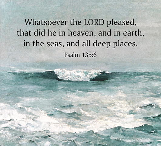 Genesis 1:2 And the earth was without form, and void; and darkness was upon the face of the deep. And the Spirit of God moved upon the face of the waters. Genesis 7:11-12 In the six hundredth year of Noah's life, in the second month, the seventeenth day of the month, the same day were all the fountains of the great deep broken up, and the windows of heaven were opened. And the rain was upon the earth forty days and forty nights. Deuteronomy 33:13 And of Joseph he said, Blessed of the LORD be his land, for the precious things of heaven, for the dew, and for the deep that coucheth beneath, Nehemiah 9:10-11 And shewedst signs and wonders upon Pharaoh, and on all his servants, and on all the people of his land: for thou knewest that they dealt proudly against them. So didst thou get thee a name, as it is this day. And thou didst divide the sea before them, so that they went through the midst of the sea on the dry land; and their persecutors thou threwest into the deeps, as a stone into the mighty waters. Job 38:29-30 Out of whose womb came the ice? and the hoary frost of heaven, who hath gendered it? The waters are hid as with a stone, and the face of the deep is frozen. Psalm 42:7 Deep calleth unto deep at the noise of thy waterspouts: all thy waves and thy billows are gone over me. O Maker of the mighty deep In Thee we trust, whate’er befall; - Henry J. Van Dyke - Psalm 69:14-15 Deliver me out of the mire, and let me not sink: let me be delivered from them that hate me, and out of the deep waters. Let not the waterflood overflow me, neither let the deep swallow me up, and let not the pit shut her mouth upon me. Psalm 95:3-4 For the LORD is a great God, and a great King above all gods. In his hand are the deep places of the earth: the strength of the hills is his also.